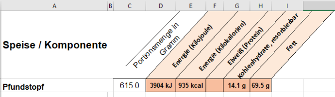 1. Wert aus Zutaten-Spalte manuell, wobei dieser aus einem PRiNS-Datenblatt stammen oder tatsächlich manuell (bekannter Wert, ggf. gerundeter PRiNS- oder