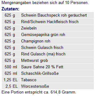 Automatisch aus den für die jeweiligen Zutaten hinterlegten Nährwertangaben berechnete Nährwertmenge pro Portion. Die