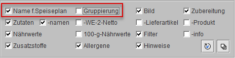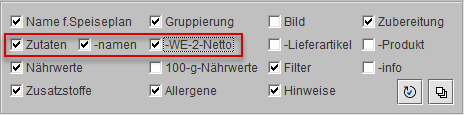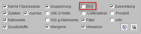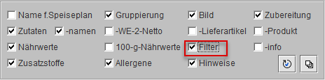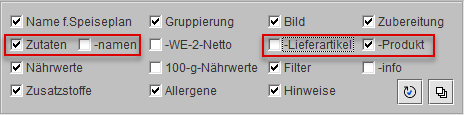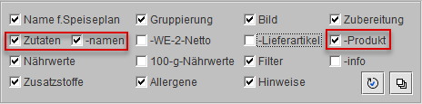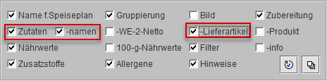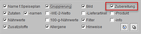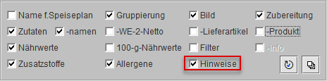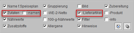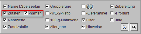 Über diese Option Zusatzstoffe kann der Ausdruck des kompletten Abschnitts Zusatzstoffe ein- oder ausgeschaltet werden.