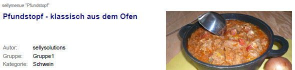 Auf dem Druck erscheint statt der eindeutigen Bezeichnung des Rezeptes der optionale Name für Speiseplan als Überschrift. Wird das Bild abgewählt, kann der Name die gesamte Breite des Blattes nutzen.