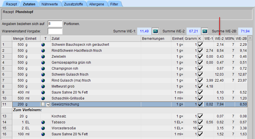 Option Zutaten-Produkt mit Zutaten-namenZutProdukt_Name