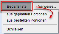 Sie wählen zwischen der Bedarfsliste aus geplanten oder bestellten Portionen.