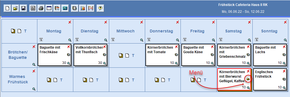 o. Markierung 3) öffnet sich der ausgewählte Speiseplan.