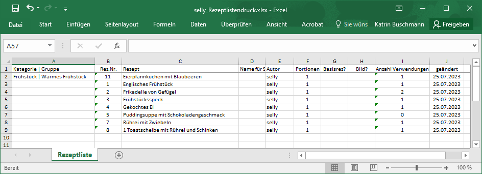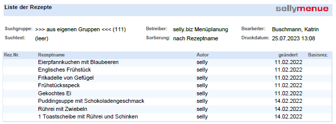 (s. Markierung 2) kann eine Liste der Rezeptnamen für die ausgewählten Sucheinstellungen