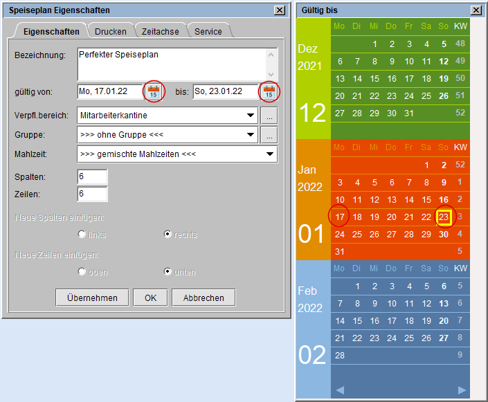 Für den Zeitraum in dem der Speiseplan gültig ist, öffnen Sie
