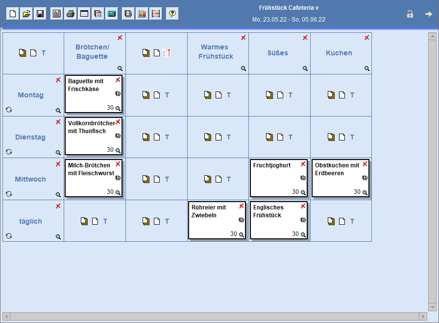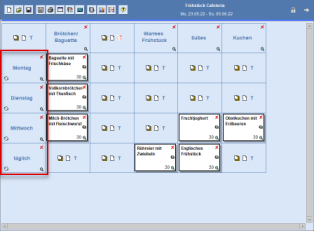 Die taggenaue Berechnung und Auswertung für die Wareneinstandswerte setzt einen zeitlichen Bezug des Speiseplans voraus.
