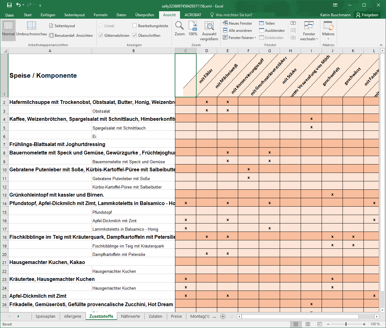 Die deklarierten Zusatzstoffe werden für jede Komponente pro Zutat angezeigt.
