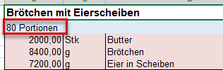 Speiseplan angegebene Portionsanzahl pro Speise oberhalb der