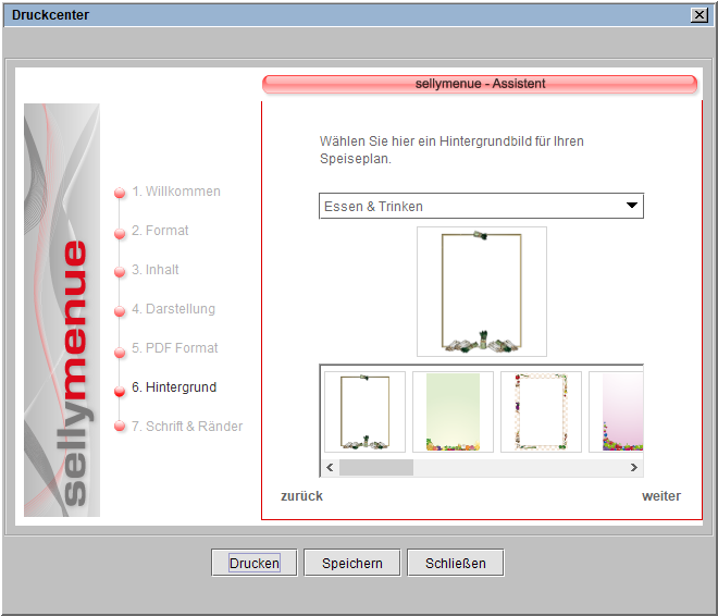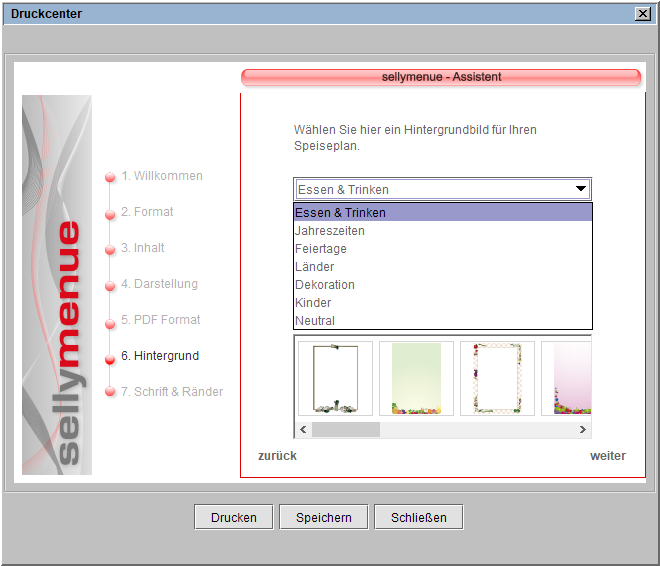 Haben Sie während der gerade aktuellen sellymenue-Nutzung bereits einen Ausdruck getätigt oder anderweitig Einstellungen vorgenommen, werden diese für den Ausdruck verwendet.