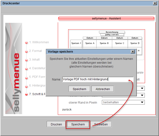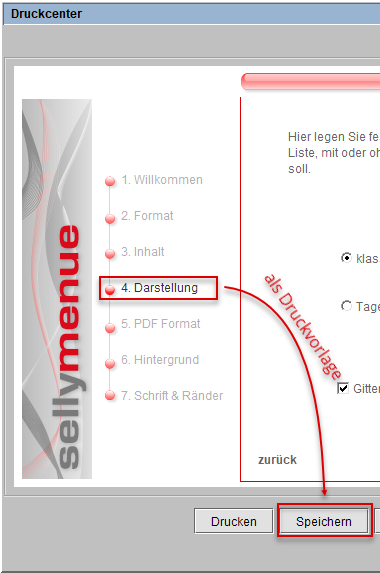 Speiseplandruck gewählt, befinden Sie sich im Schritt 4 (s. Bild