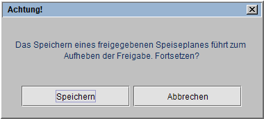 Für die Freigabe muss der Speiseplan vorher gespeichert sein, sonst gibt es folgenden Hinweis: "Speichern Sie bitte erst den Speiseplan, um diese Funktion nutzen