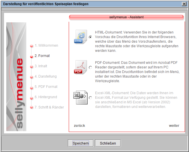 Je nach Formatauswahl durchlaufen Sie die Schritte 1-7 unterschiedlich:
