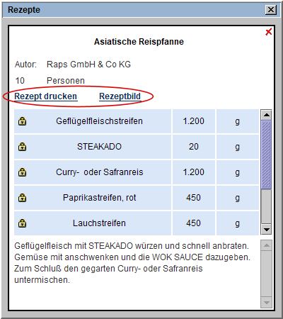 Zum Ausdruck des Rezeptes nutzen Sie den Link Rezept drucken und ebenso zur Ansicht des Rezeptbildes den Link Rezeptbild.