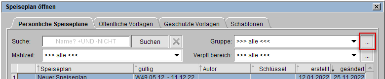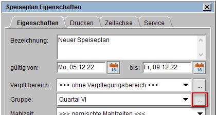 Sie öffnen zuerst den Dialog Speiseplan Eigenschaften,