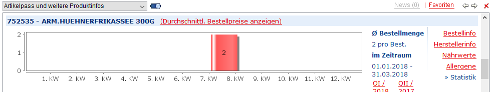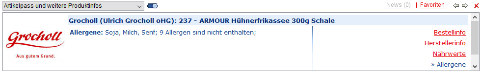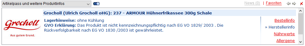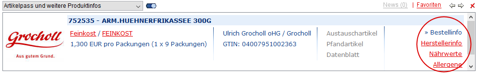Je nach Vorkommen in der Datenbank werden Ihnen zum Artikel weitere Infos angezeigt. Neben der Bestellinfo (Artikelname,