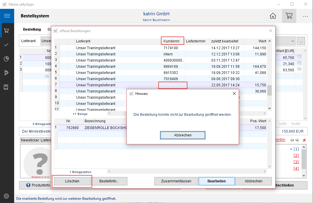 4. Wurde bspw. eine Bestellung vor längerer Zeit vorbereitet und nicht abschlossen, kann eine Kundennummernänderung bzw. Kundennummernlöschung dazu führen, dass diese offene Bestellung