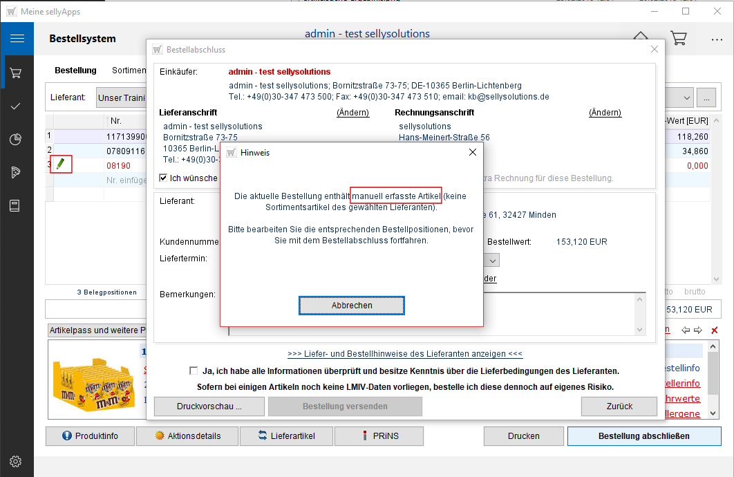 manuell eingetragenen Positionen aus Ihrer offenen Bestellung entfernen.