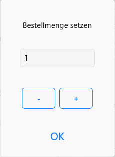 erhalten Sie das Mengenfeld und ändern die Bestellmenge durch Eintragen bzw. Nutzen der +- oder -Tasten. Mit Klick auf [OK]