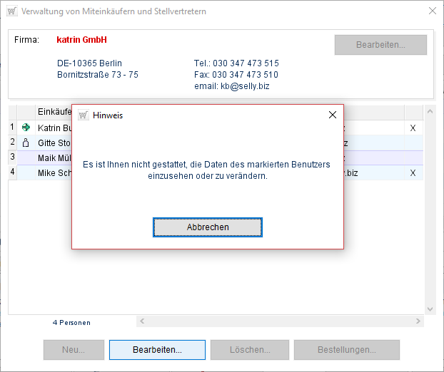 Somit ist die Bearbeitung nur noch der eigenen Daten möglich.
