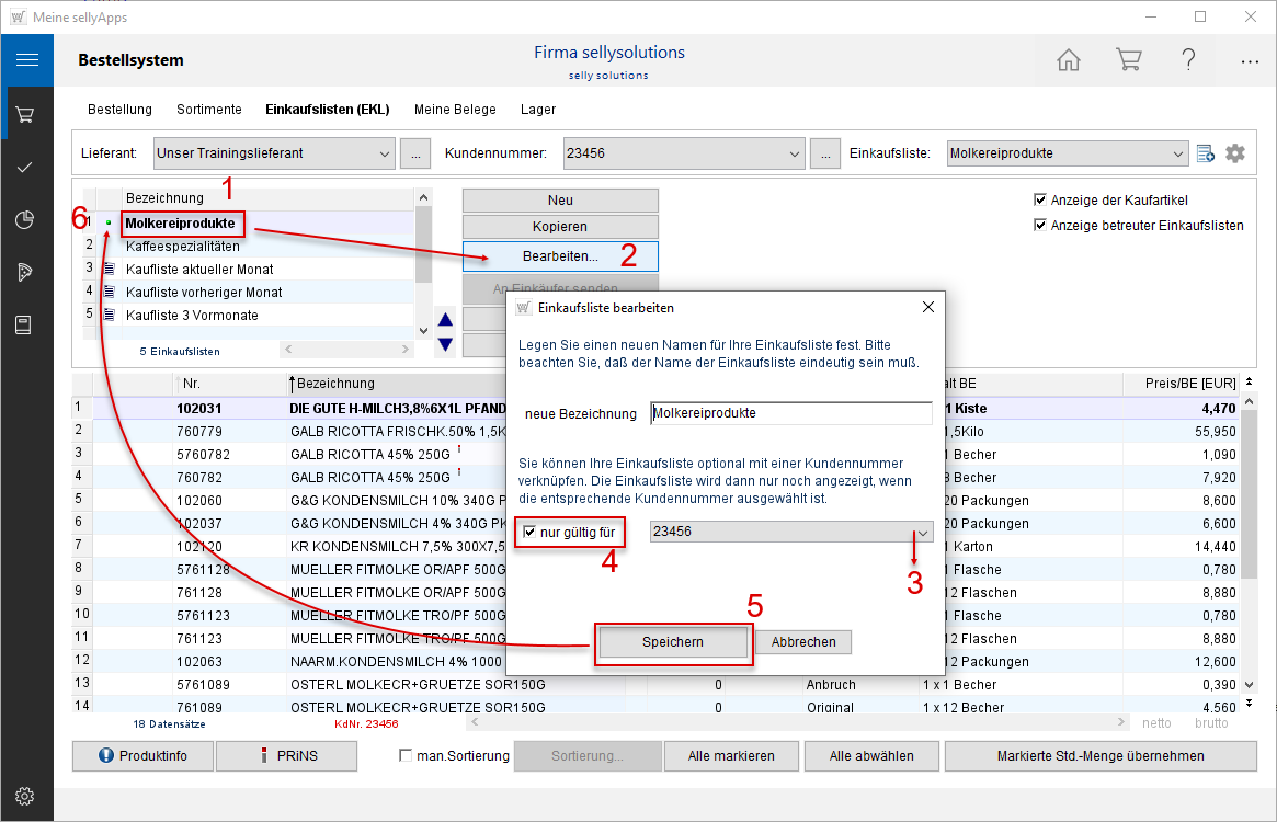 Zusätzlich können Sie eine Einkaufsliste optional mit einer Kundennummer verknüpfen. Die Einkaufsliste wird dann nur noch angezeigt, wenn die entsprechende Kundennummer ausgewählt wird.