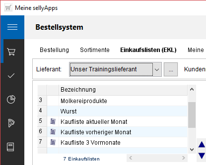 Mit Klick auf diese Schaltfläche erhalten Sie den Eintrag Neue Einkaufsliste in der Liste der EKLs und Kauflisten.