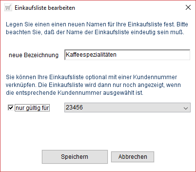 Zusätzlich können Sie eine Einkaufsliste optional mit einer Kundennummer verknüpfen. Die Einkaufsliste wird dann nur noch angezeigt, wenn die entsprechende Kundennummer