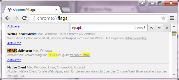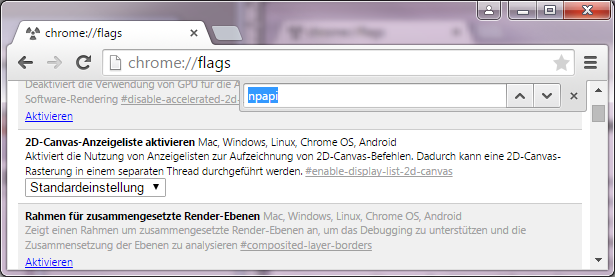 Im Browser Google Chrome tragen Sie chrome://flags in die Adresszeile ein.