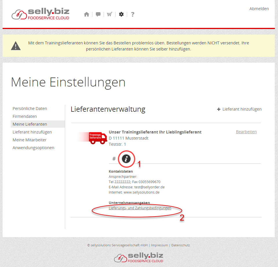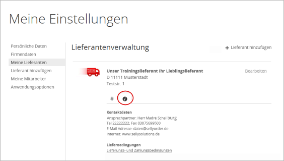 Im Bereich Meine Lieferanten, im Benutzerkonto können Sie sich ebenfalls über die Lieferbedingungen informieren.