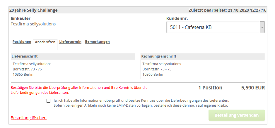 Bevor Sie die Bestellung versenden, informieren Sie sich über die Liefer- und Rechnungsanschrift.