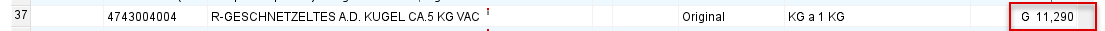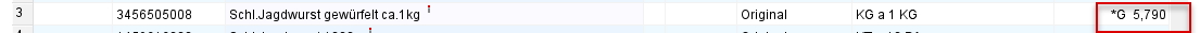 Die Preise können mit zusätzlichen Informationen auswiesen werden. Je nach Einstellung durch Ihren Lieferanten kann ein Preis mit einem vorgestellten G,