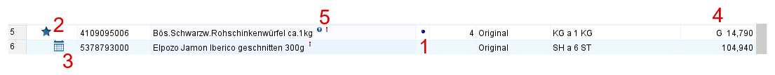 Die blaue Markierung in einer Zeile in der Artikelliste