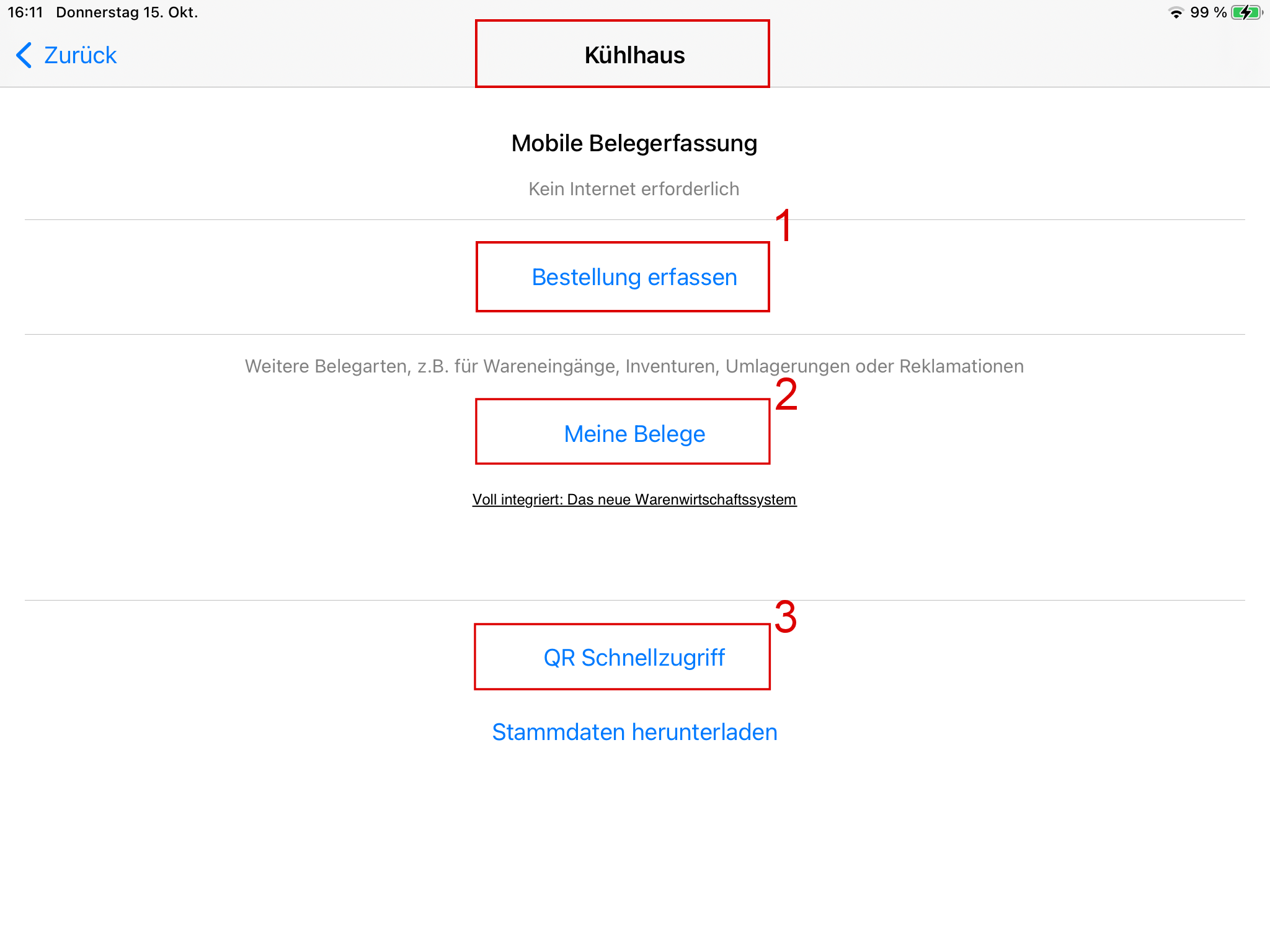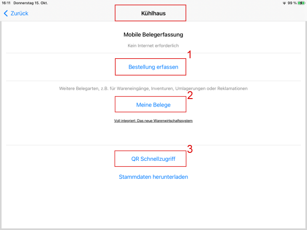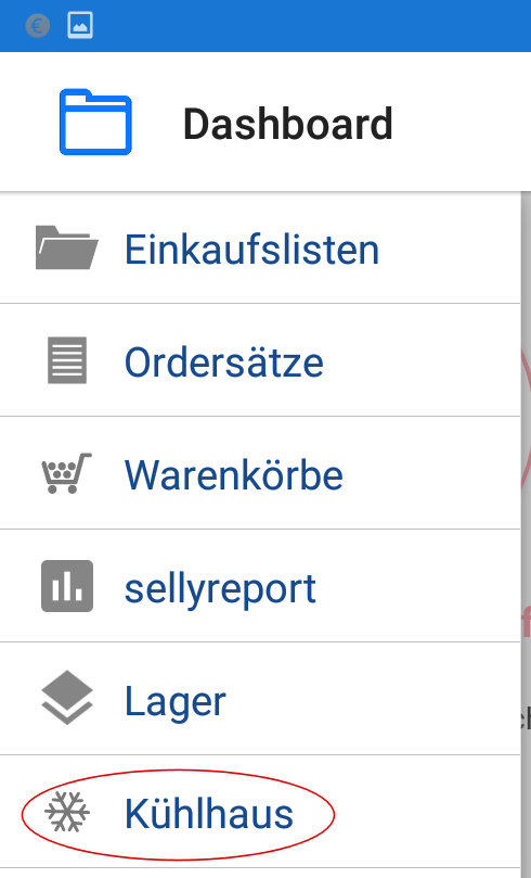 erfassen (s. Markierung 1), um den Bereich Kühlhaus zu