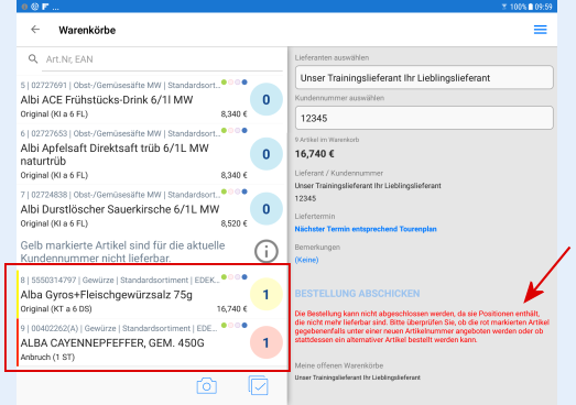 Entfernen Sie zunächst die nicht mehr bestellbaren Artikel
