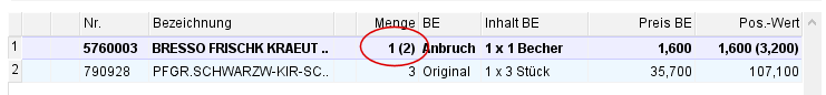 Die aktualisierte Menge sehen Sie nachfolgend im Dialog Details in der Spalte Menge in Klammern gesetzt.