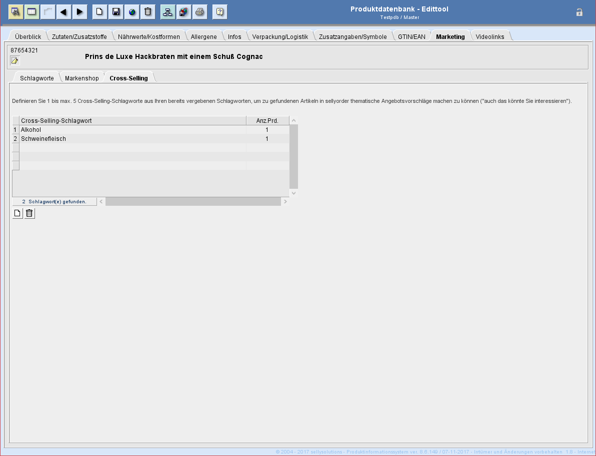 Es sind maximal 10 Cross-Selling Schlagworte pro Produkt möglich.