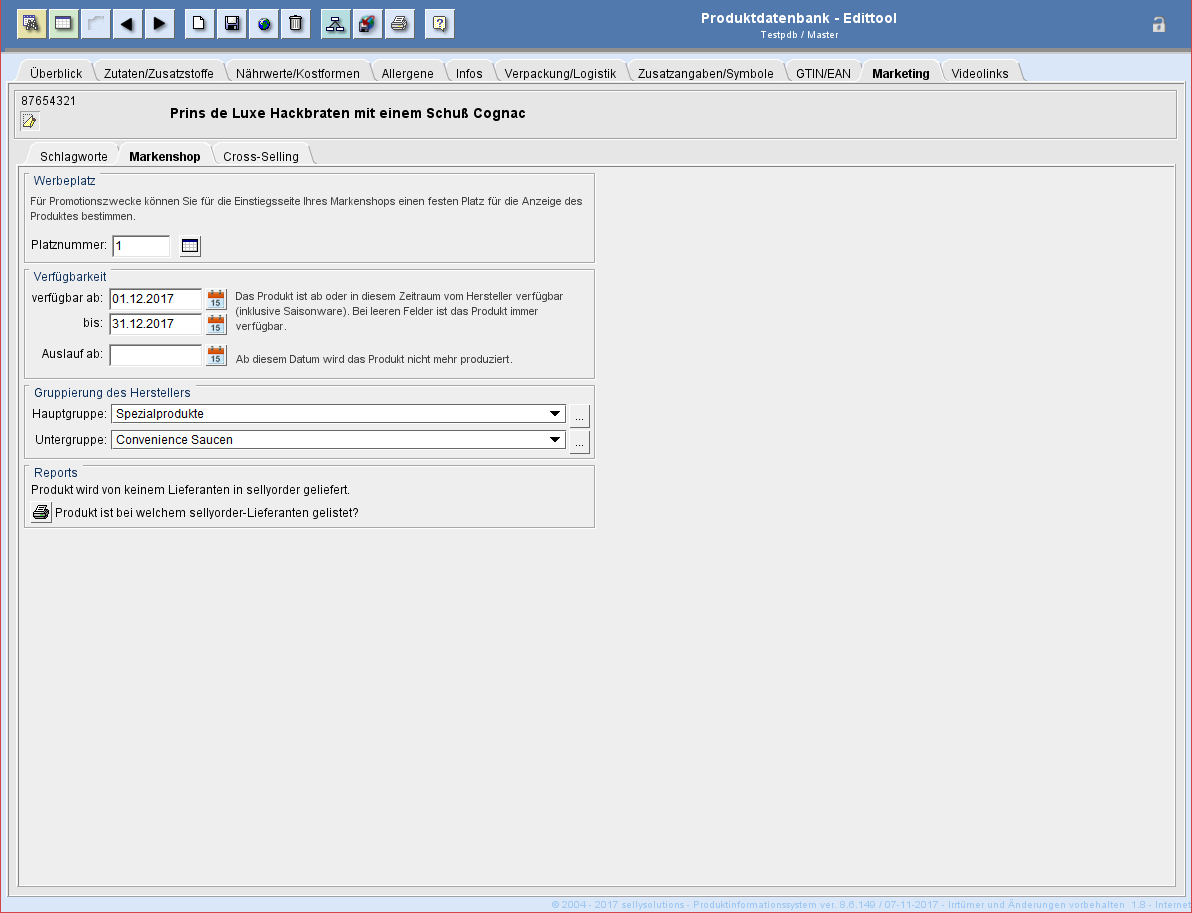 Es kann eine Platznummer für das Produkt vergeben werden, die die Anzeigeposition des Produktes auf der Einstiegsseite im Markenshop des Herstellers bestimmt.