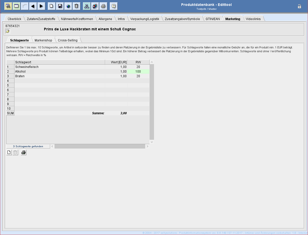 Für die Schlagworte fällt eine monatliche Gebühr von mindestens 1,00 EUR pro Produkt an. Die Gebühr kann auf mehrere Schlagworte aufgeteilt werden, wobei die Mindestgebühr für ein
