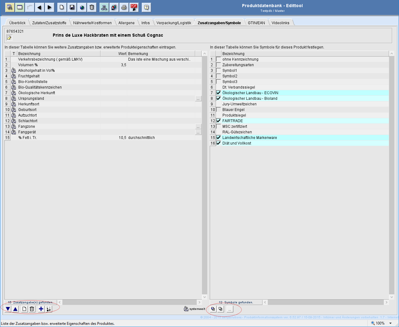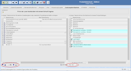 Zum Hinterlegen von zusätzlichen Produktmerkmalen und Zuordnen von Symbolen, nutzen die Toolbars (s. Markierungen).