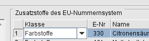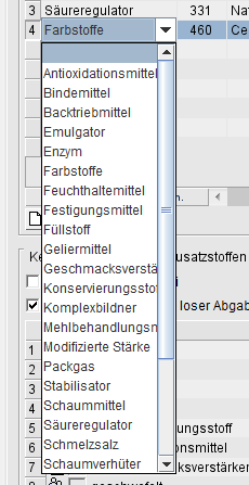 Wird keine Klasse benötigt oder sind Sie sich nicht sicher, welcher Funktionsklasse der Zusatzstoff angehört, wählen Sie vorzugsweise den ersten Eintrag in der Listenauswahl