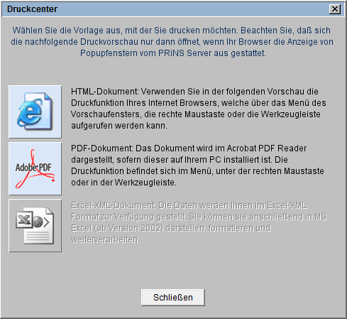 Sie wählen zwischen der Ausgabe eines HTML- oder PDF-Dokuments und starten den Druckvorgang über die rechte Maustaste.