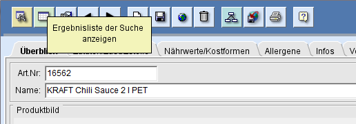 Je nach Bearbeitungszustand werden die einzelnen Funktionen in der Toolbar zu- bzw. abgeschaltet. So können Sie z. B. auf die Ergebnisliste einer Suche erst nach einem Suchvorgang zugreifen.