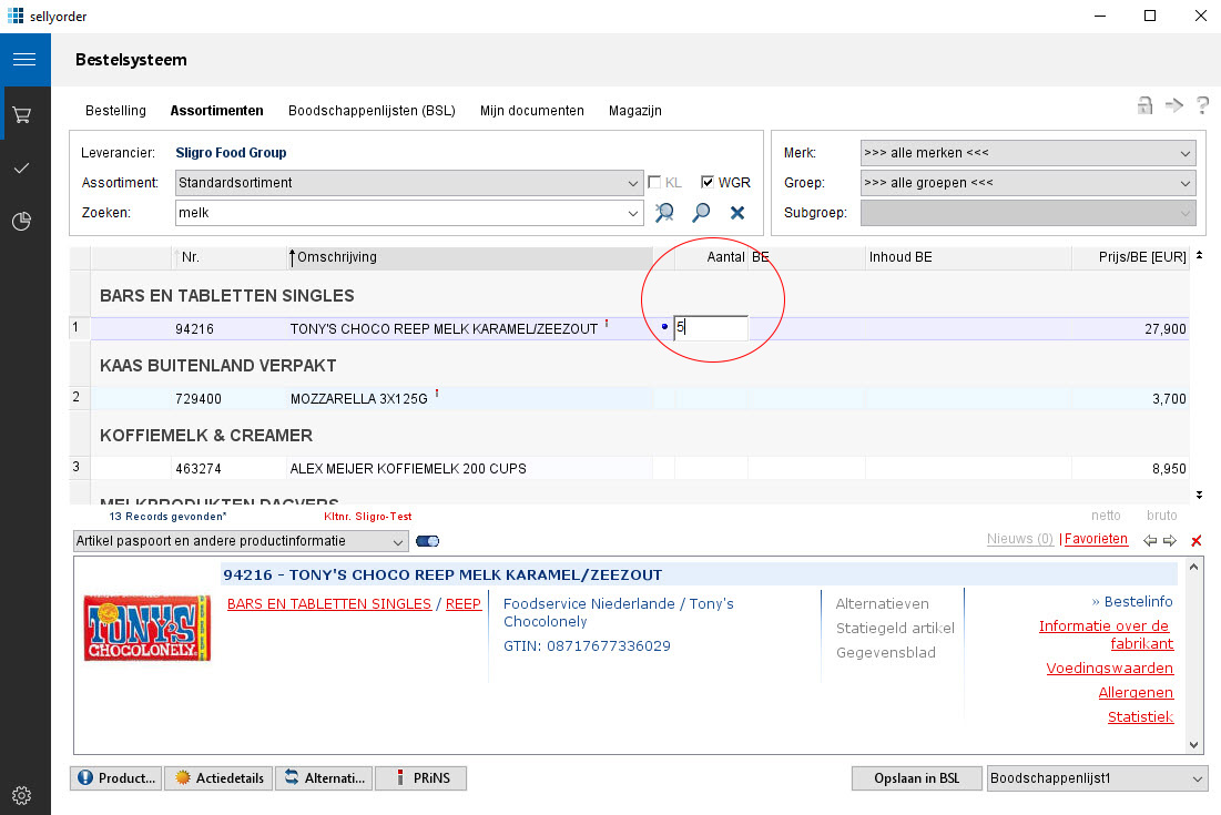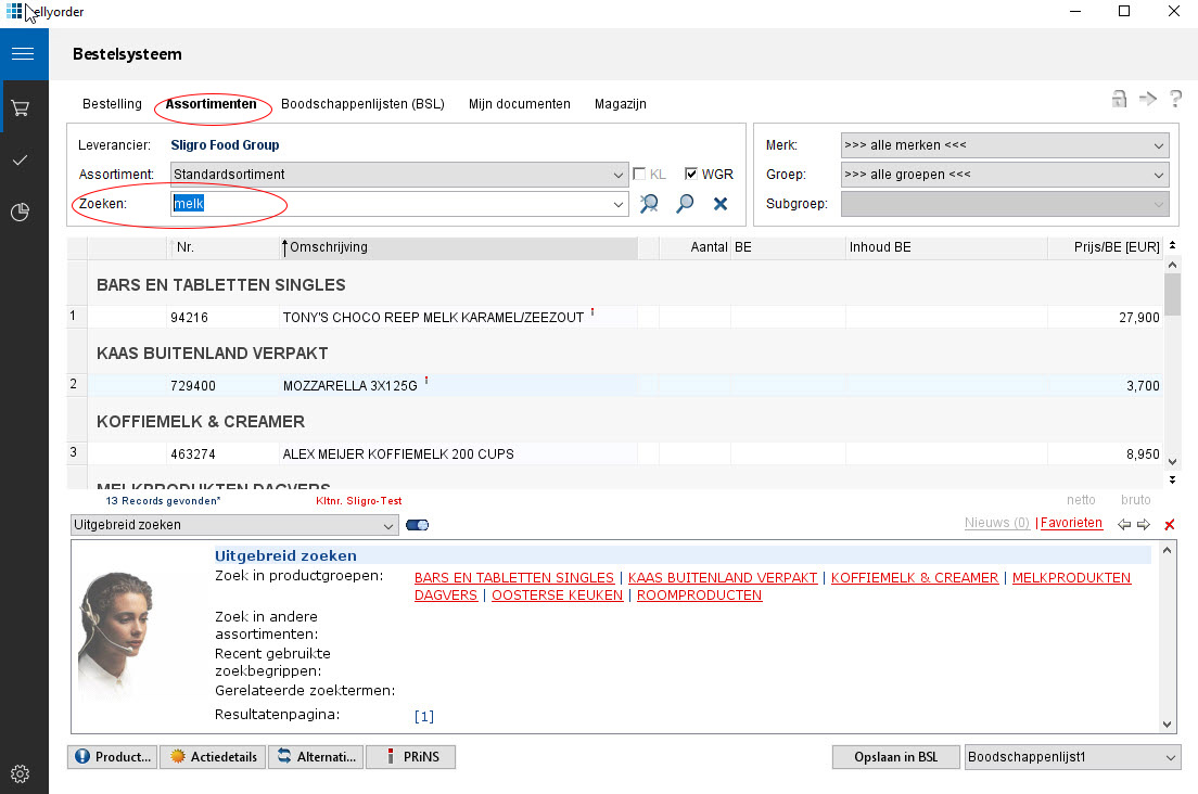U kunt nu uw artikelen kiezen uit het zoekresultaat en ze door er dubbel op te klikken toevoegen aan de bestelling.