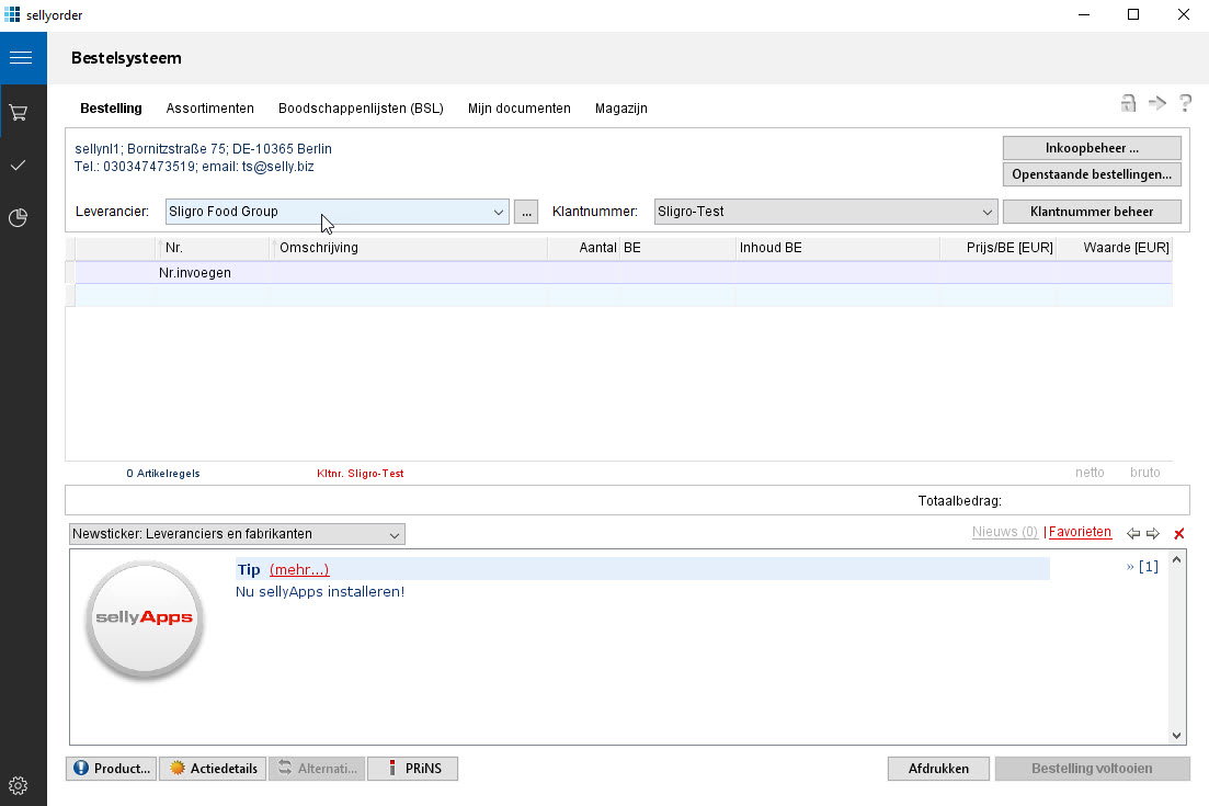 Kies sellyorder uit het overzicht en klik hierop. De applicatie zal nu worden gestart.