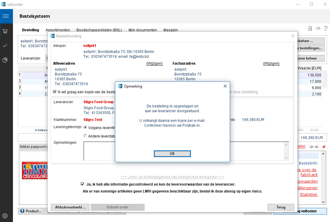 Uw bestelling wordt nu opgeslagen en doorgestuurd aan de leverancier. Kort daarna ontvangt u een bestelbevestiging  via e-mail.