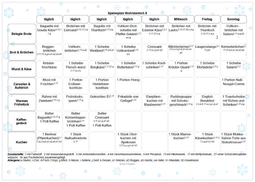Das Jahr neigt sich dem Ende zu. Sogar Schnee ist schon gefallen, sodass wir auf eine weiße Weihnacht hoffen können. Wir bedanken uns von Herzen bei allen Kunden und Partnern für die Treue und wünschen Ihnen eine geruhsame Festzeit und ein glückliches, erfolgreiches Jahr 2024. Extra für Sie haben wir ein bekanntes Weihnachtsgedicht à la selly abgewandelt. Unsere Kolleginnen und Kollegen haben sich außerdem Gedanken gemacht, womit sie Ihnen eine kleine Freude bereiten können: Für diejenigen, die Speisepläne direkt aus selly ausdrucken, gibt es jetzt neue weihnachtliche Designs.