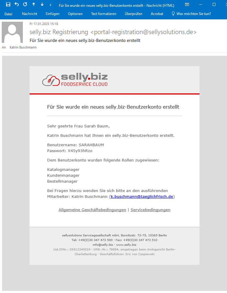 Der neu hinzugefügte Benutzer erhält nachfolgend eine E-Mail mit seinem Kennwort.