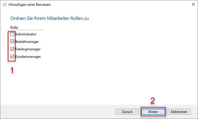 Für jeden Benutzer werden vier Rollen angeboten: Administrator, Bestell-, Katalog- und Kundenmanager.