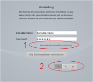 - Über die Funktion Automatische Anmeldung zulassen kann eine automatische Anmeldung erreicht werden. Das Anmeldungsfenster wird