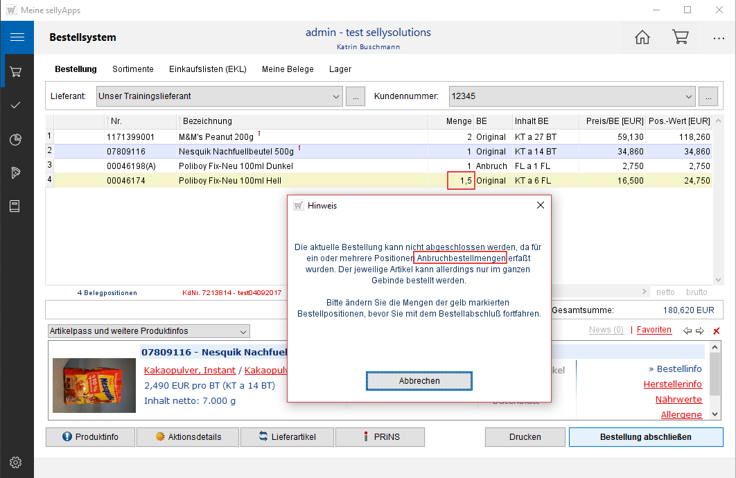 Die Lieferanten, die eine Anbruchbestellung zulassen, weisen die Artikel im Sortiment extra aus bspw. mit der Angabe