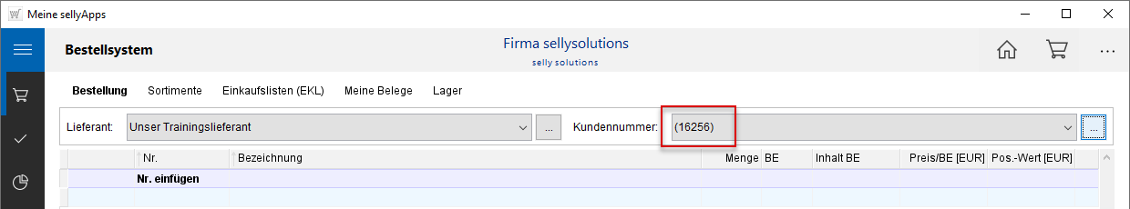 Kundennummern in sellyorder verwalten